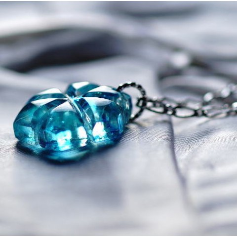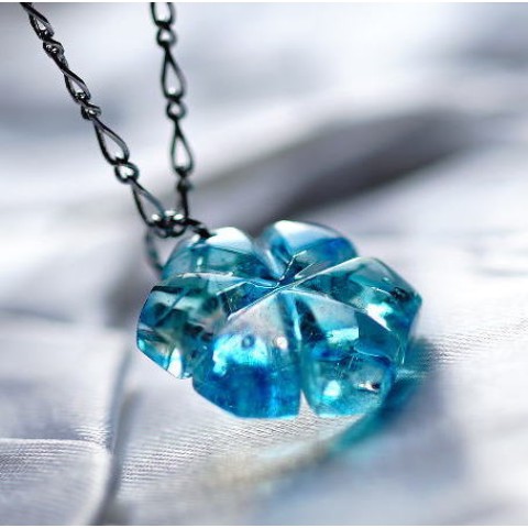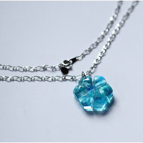 澄み渡る透明の水に風が触れ、淡い青緑の模様を浮き立たせます。様々な色合いの煌きがさざ波のように輝き、それはまるで優しい水の結晶のよう。いつでも心優しくホッとできるような気持ちで身に着けていただきたいオリジナルペンダントです。末永くお楽しみいただけましたら幸いです。