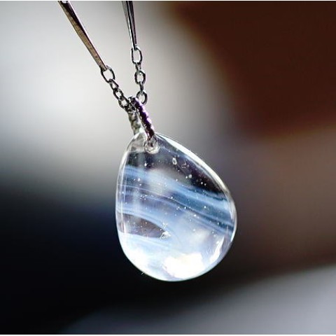 ガラスアクセサリー / コレクション:ネックレス・ペンダント / 190328-181125 / 3380 / アメリカンガラス / 約19×15×7mm / 白系・透明 イリデセント(ラメ)加工マーブル加工 / バーリングチェーン シルバー色 45cm / La forme