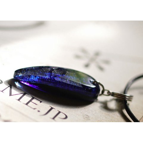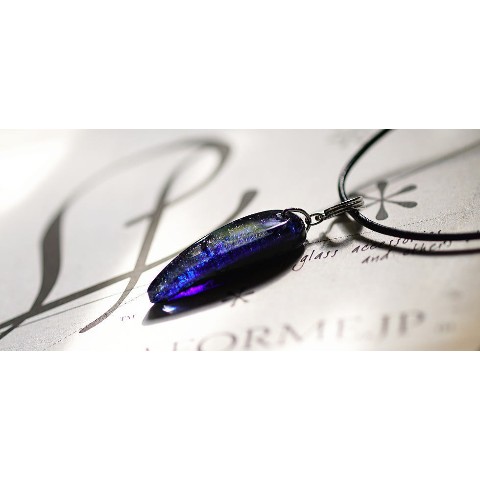 ガラスアクセサリー / コレクション:ネックレス・ペンダント / 180622-181518 / 3143 / アメリカンガラス / 約41×14×9mm / 青紫系 イリデセント(ラメ)加工 / あずきチェーン シルバー色 50cm / La forme