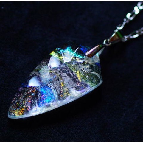 ガラスアクセサリー / コレクション:ネックレス・ペンダント / 180601-144757 / 3119 / アメリカンガラス / 約45×22×10mm / 白系・透明 ダイクロ偏光ガラス加工マーブル加工アイスロック加工蓄光加工 / フィガロチェーン シルバー色 50cm 長さ調整用 ビーズ付き / La forme