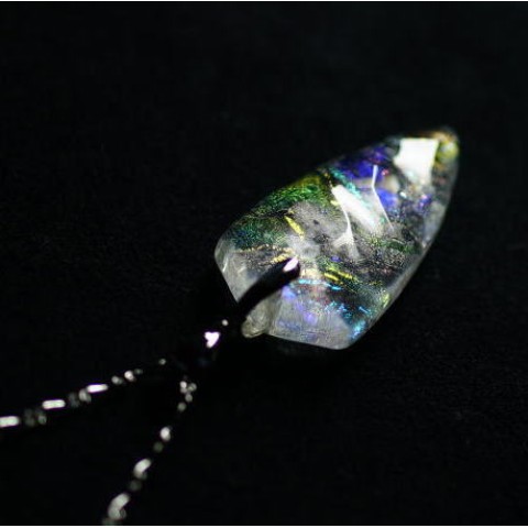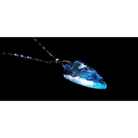 大空を見上げると、時間や季節で様々な色合いが煌きます。そんなシーンを氷のかけらの中に表現した世界に一つの存在感のあるエンブレムペンダントです。表面に施したランダムなアイスロックカット、そして内部のマーブル状の煌きに光が反射してより一層美しく煌きます。また光を吸収するたびに半永久的な光を放つ蓄光加工もマーブル状に流れるように施しております。存在感と透明感、そして煌きを昼夜問わずお楽しみいただける逸品に仕上がりました。