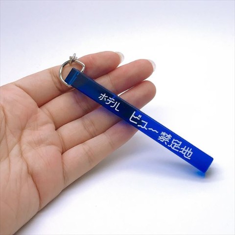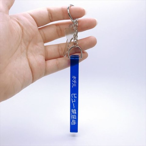 そんな架空のホテル、「ホテルビュー禁足地」のルームキーホルダー風キーホルダーです。