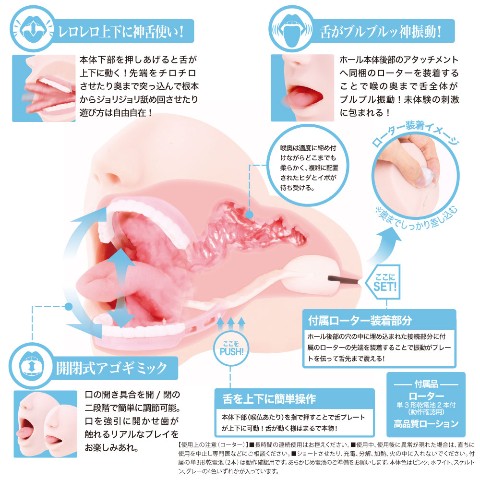前作の極選フェラから更に進化した造形技術により舌と顎を自由に動かせる「可動ギミック」を実現。