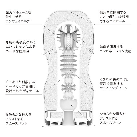 くっきりと刺激する超ハ-ド設計によって、強力に締めつけながら、強力に吸引される快感をお楽しみください。