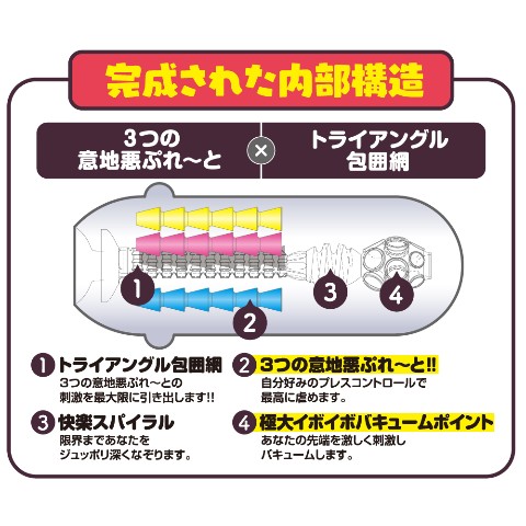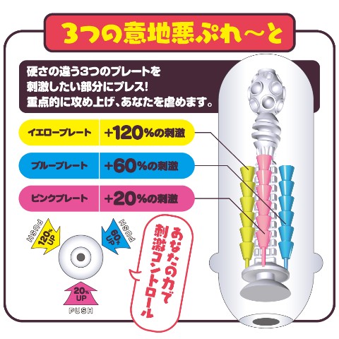 トライアングル状に配置された硬さの違う3つの“意地悪ぷれ~と"を刺激したい部分にプレスコントロールすることで、 あなたを重点的に攻め上げます!