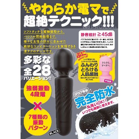 強弱振動4段階 × 振動パタ-ン7種類で多彩な全28 バリエ-ション!ソフトタッチな繊細振動から、パワフル悶絶振動まで、様-な女性の好みに合わせた絶妙なコンビネ-ションを実現できる超絶テクニックのデンマです。パワフルなのに静かなモ-タ-音は、周りを気にせず安心して使用できます。
