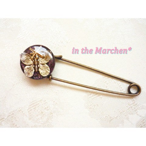 【in the Marchen*】「秘密の理化学実験室」ピンブローチ 白銀化した蝶の標本 群青