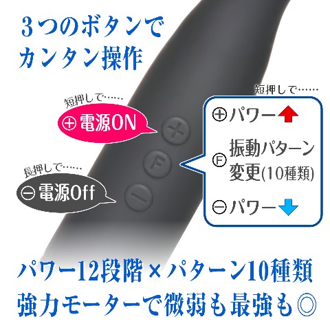 パワ-12段階×リズム振動10パタ-ン! 充電不要でスグに使えます◎