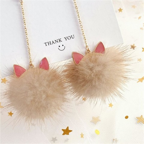 ふわふわのベージュのファーから、ピンクのネコミミがちらっと覗く大人可愛いイヤリングです♪