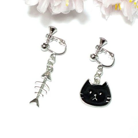 【#kawaiiiii!】くろねことフィッシュボーンのイヤリング