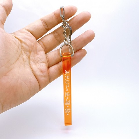 ブランド名「並行世界」がプリントされたアクリル製の鍵型ブランドタグ付きです。