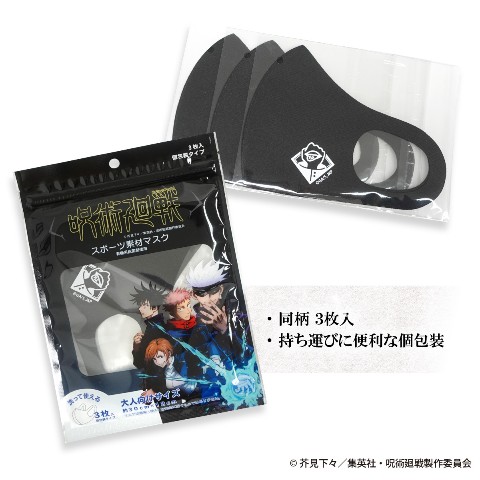 人気TVアニメ『呪術廻戦(じゅじゅつかいせん)』から、人気キャラクターのアイコンマークをデザインしたマスクが登場しました。