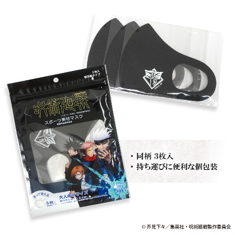 人気TVアニメ『呪術廻戦(じゅじゅつかいせん)』から、人気キャラクターのアイコンマークをデザインしたマスクが登場しました。