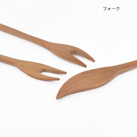 ”””サオ(サウォ)ウッドという果物の木で作ったリーフモチーフのフォークとスプーンです。すべすべの肌触りが心地よいナチュラルアイテム。癒しのティータイムにおすすめです!