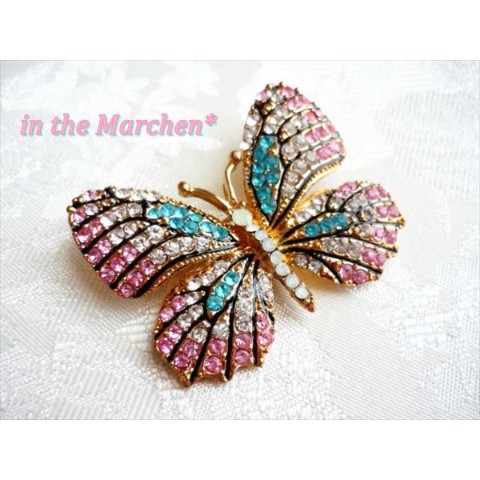 【in the Marchen*】「宝石バタフライブローチ」 ピンク系