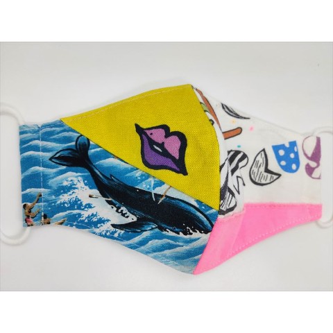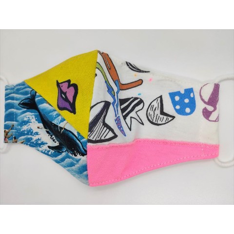 可愛いクジラ柄のアメリカンアロハコットンとショウジョノトモのテキスタイルをミックスしたサマー限定マスク!