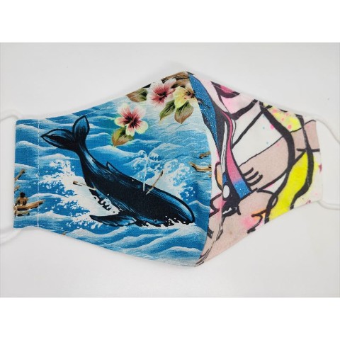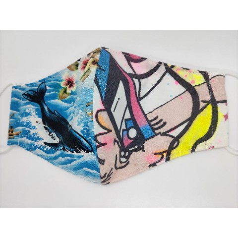 可愛いクジラ柄のアメリカンアロハコットンとショウジョノトモのテキスタイルをミックスしたサマー限定マスク!