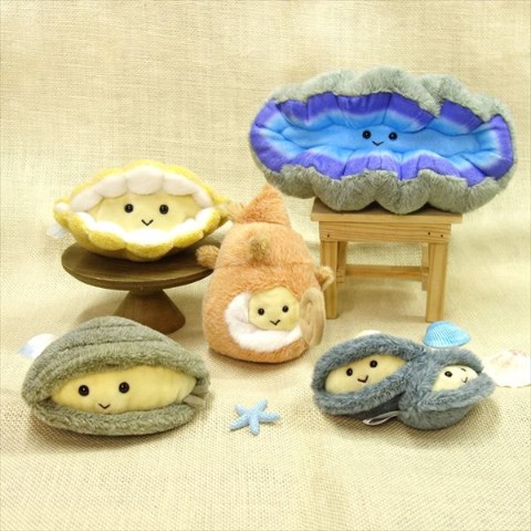 ”さらさらシャーベット生地を使用した、触り心地抜群の「ぽちゃまる」シリーズより、ちょっと珍しい貝のぬいぐるみが登場です!