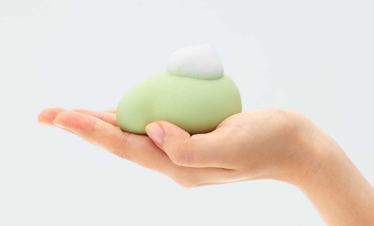 ワンプッシュで出てくるふわふわの泡をアイテムに付けて、ティッシュなどで拭き取るだけの簡単ケア。