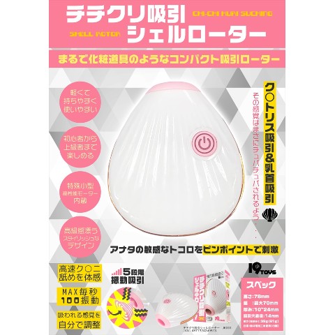 化粧品のようなコンパクトな貝殻型吸引ローター、敏感なところもピンポイントで刺激ができ5段階の振動吸引、高速ク○ニ舐めを体感できます。MAX毎秒100振動とパワーも十分な為、吸われる感覚を自分で調整可能です。部屋に置いても気にならないスタイリッシュなデザイン。