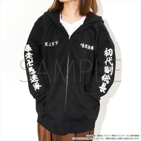 東京卍會メンバーの特攻服をイメージしたオーバーサイズのジップパーカー第二弾が発売決定! 男性はもちろん、女性も流行の大きめシルエットでトレンドの着こなしが可能です。 着心地の良い綿100%素材なので部屋着としても◎。 袖や背中といった細部までプリントが入っていて、東京卍會の一員になったような気分が味わえること間違いなしです。