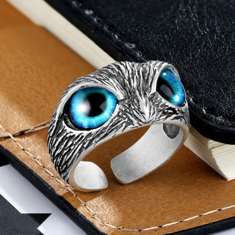 鋭く光る青い瞳がカッコいい、フクロウのリングです。