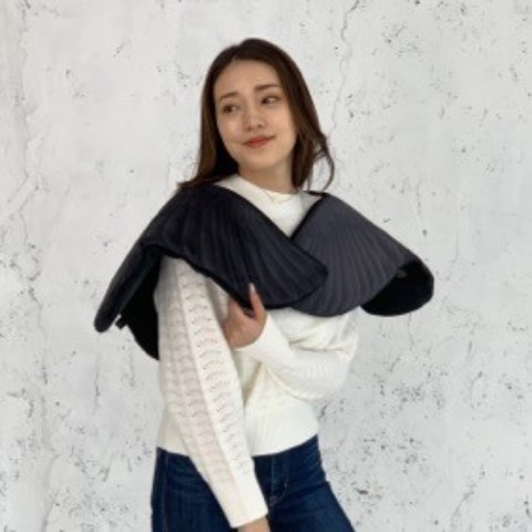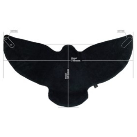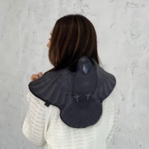 カラスの羽に各2個スナップボタンが付いていますので、肩から首にかけて装着する事ができます。