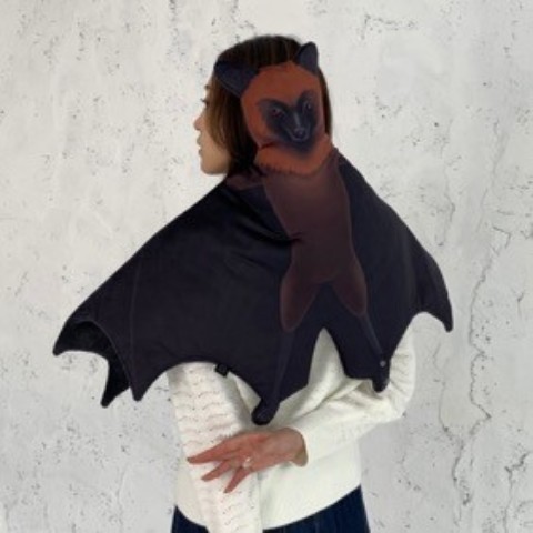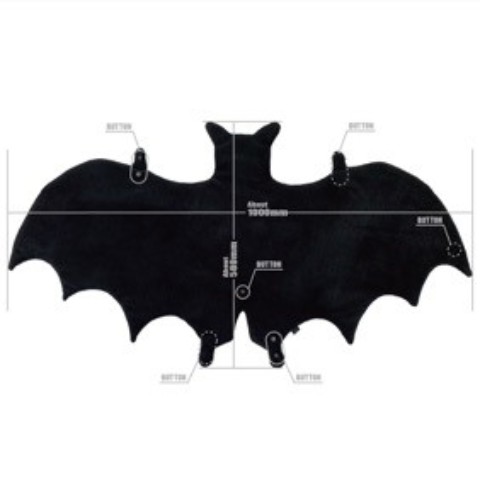 オオコウモリの翼、足に各2個スナップボタンが付いていますので、背中から肩にかけて装着する事ができます。