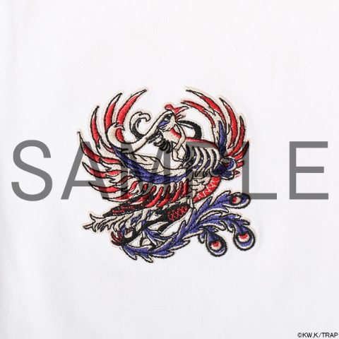 登場人物7名をモチーフにしたオリジナルイラスト「東卍亞仁魔流」(トーマンアニマル)シリーズの刺繍Tシャツ。金魚(武道)、鳳凰(マイキー)、龍(ドラケン)、ライオン(場地)、黒猫(千冬)、白蛇(三ツ谷)、虎(一虎)のイラストはイラストレーターのギブミ~!トモタカさんに制作していただきました。