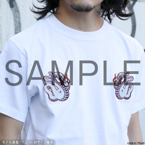 登場人物7名をモチーフにしたオリジナルイラスト「東卍亞仁魔流」(トーマンアニマル)シリーズの刺繍Tシャツ。金魚(武道)、鳳凰(マイキー)、龍(ドラケン)、ライオン(場地)、黒猫(千冬)、白蛇(三ツ谷)、虎(一虎)のイラストはイラストレーターのギブミ~!トモタカさんに制作していただきました。