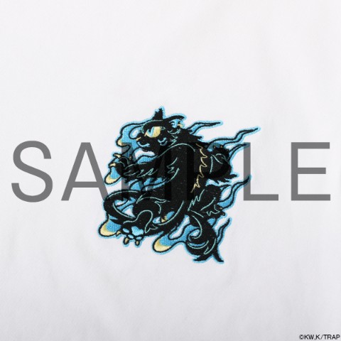 登場人物7名をモチーフにしたオリジナルイラスト「東卍亞仁魔流」(トーマンアニマル)シリーズの刺繍Tシャツ。金魚(武道)、鳳凰(マイキー)、龍(ドラケン)、ライオン(場地)、黒猫(千冬)、白蛇(三ツ谷)、虎(一虎)のイラストはイラストレーターのギブミ~!トモタカさんに制作していただきました。