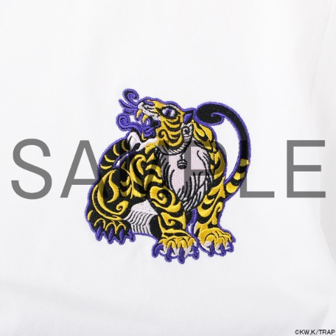 登場人物7名をモチーフにしたオリジナルイラスト「東卍亞仁魔流」(トーマンアニマル)シリーズの刺繍Tシャツ。金魚(武道)、鳳凰(マイキー)、龍(ドラケン)、ライオン(場地)、黒猫(千冬)、白蛇(三ツ谷)、虎(一虎)のイラストはイラストレーターのギブミ~!トモタカさんに制作していただきました。