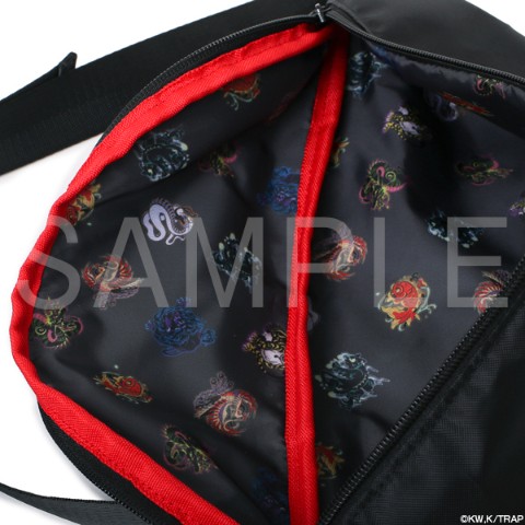 登場人物7名をモチーフにしたオリジナルイラスト「東卍亞仁魔流」(トーマンアニマル)シリーズのボディバッグ。金魚(武道)、鳳凰(マイキー)、龍(ドラケン)、ライオン(場地)、黒猫(千冬)、白蛇(三ツ谷)、虎(一虎)のイラストはイラストレーターのギブミ~!トモタカさんに制作していただきました。