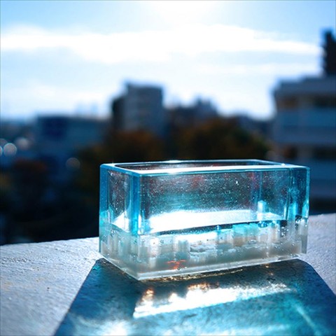 街並み部分に光を貯めて暗闇で光る溜光塗料を付着しました。ネオン街の夜景のようにぼんやりと淡く光ります。