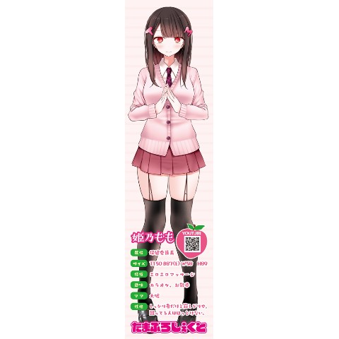 ヒメノ モモ属性:保健委員長 サイズ:T150cm B87cm(Eカップ)W58cm H89cm 性格:しっかり者だけど寂しがりや。困ってる人はほっとけない。 特技:エロエロマッサージ 趣味:カラオケ、お散歩 ママ:大嘘