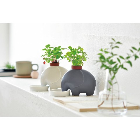 ゾウの鼻から水を吸って植物を育てる栽培セットです。陶器のゾウは愛知県瀬戸市で作られる瀬戸焼。職人がひとつひとつ丁寧に仕上げました。ぬくもりを感じるフォルムとマットな質感は、スタイリッシュなインテリアにも自然とマッチします。付属の受け皿も国産の陶器製。栽培を楽しんだ後は、ペン立てとしてお部屋のアクセントに。