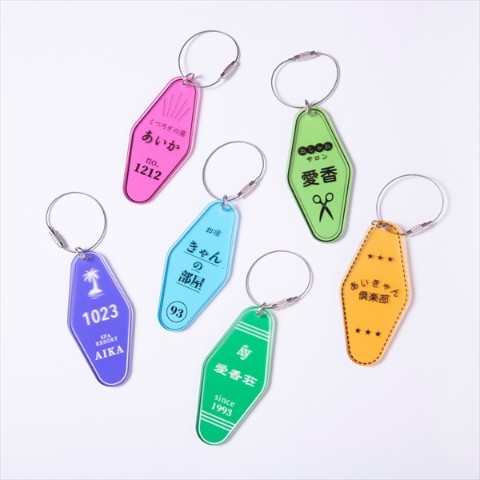 クリアな色合いがおしゃれなモーテルキーホルダー。