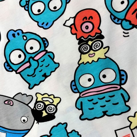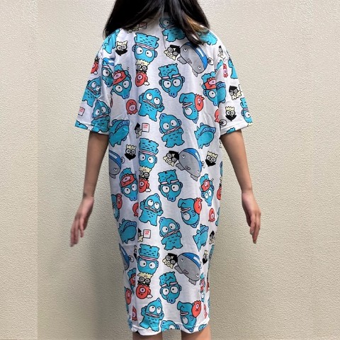 BIGサイズなのでワンピース感覚で部屋着にも最適なハンギョドンの総柄Tシャツ。サイズはXL