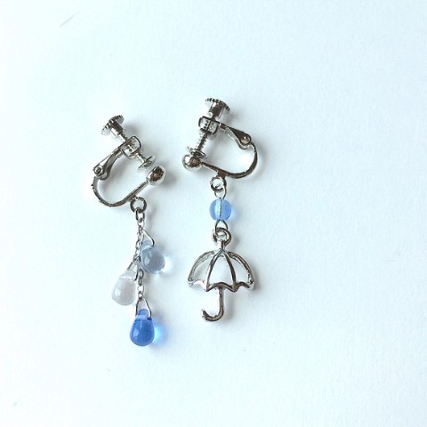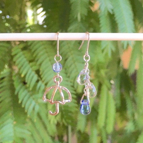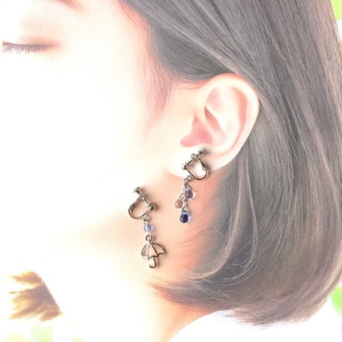 雨の日にもちょっと気分を上げる♪傘と雨粒のイヤリングです。
