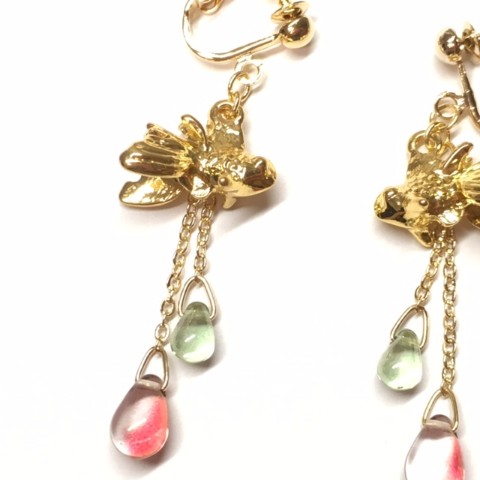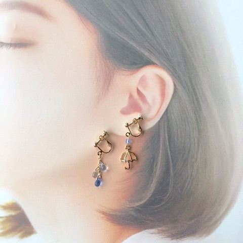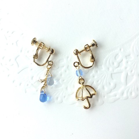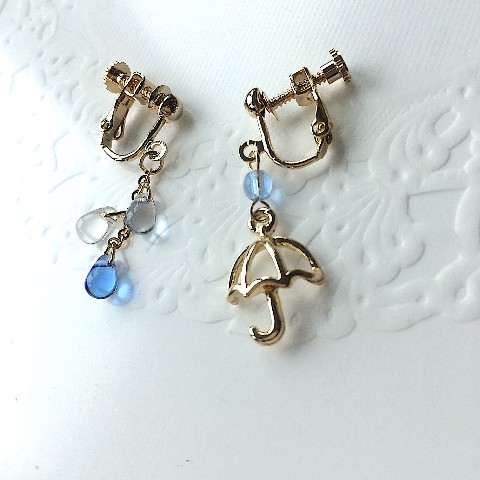 雨の日にもちょっと気分を上げる♪傘と雨粒のイヤリングです。