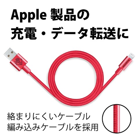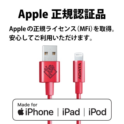 Apple MFi 認証済み Lightningケーブルで、iPhone、iPad、iPodで充電とデータ同期が可能です。