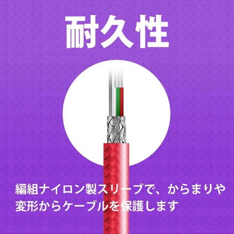 耐久性に優れ、最大2.4Aの充電します。結束バンドが付属しているため、すっきりと保管できます。