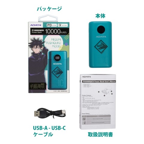 10,000mAhのバッテリーを搭載した、P10000QCDモバイルバッテリーが呪術廻戦とコラボ。