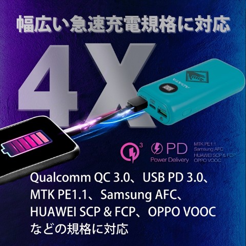 Qualcomm QC 3.0、USB PD 3.0、MTK PE1.1、Samsung AFC、HUAWEI SCP & FCP、OPPO VOOCなどに対応しています。