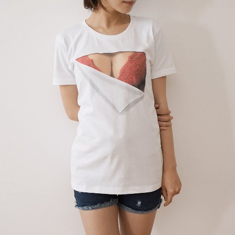 人-がこっそり思い描いている妄想世界を実現するTシャツ。 エコ-ドワ-クス独自の妄想マッピング技術により、 人-がこっそり思い描く赤裸-世界を白日の下に晒します。これであなたも人-の注目を集めること間違いなし!?