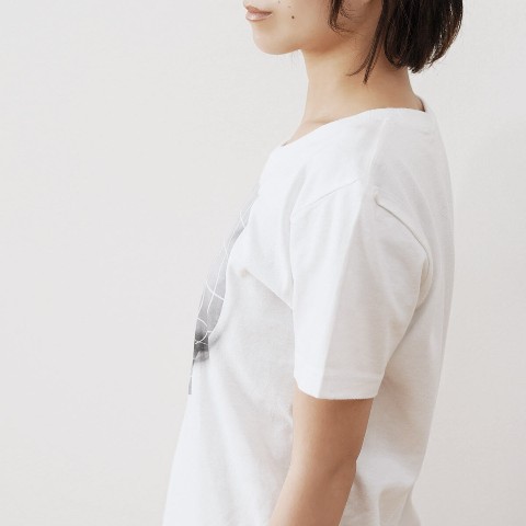 胸元の錯視効果を十分に得るには、プリント面がたわまずにピンと貼った状態が最適です。ゆったりと着こなせる大きめサイズより、ジャストフィットのサイズをお選びいただくことをお勧めします。
