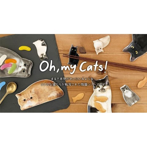 まるで本物がいるみたいなリアルな猫たちが転写された陶器シリーズ「Oh,my Cats」。