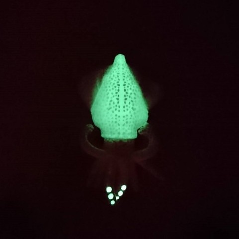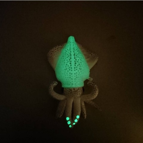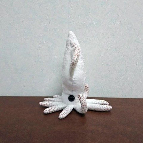 光を蓄える蓄光生地を使用したホタルイカのぬいぐるみ!