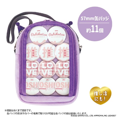 57mmの缶バッジは約11個分つけることができ、ペンライトも入るので推し活にもぴったりです。