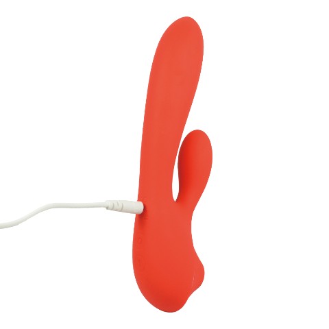 見た感じは子機付きバイブのような形状をしたRouge(ルージュ)ですが、子機下の部分が吸引バイブになっていて、振動と吸引を両方お楽しみいただける充電タイプのバイブです。